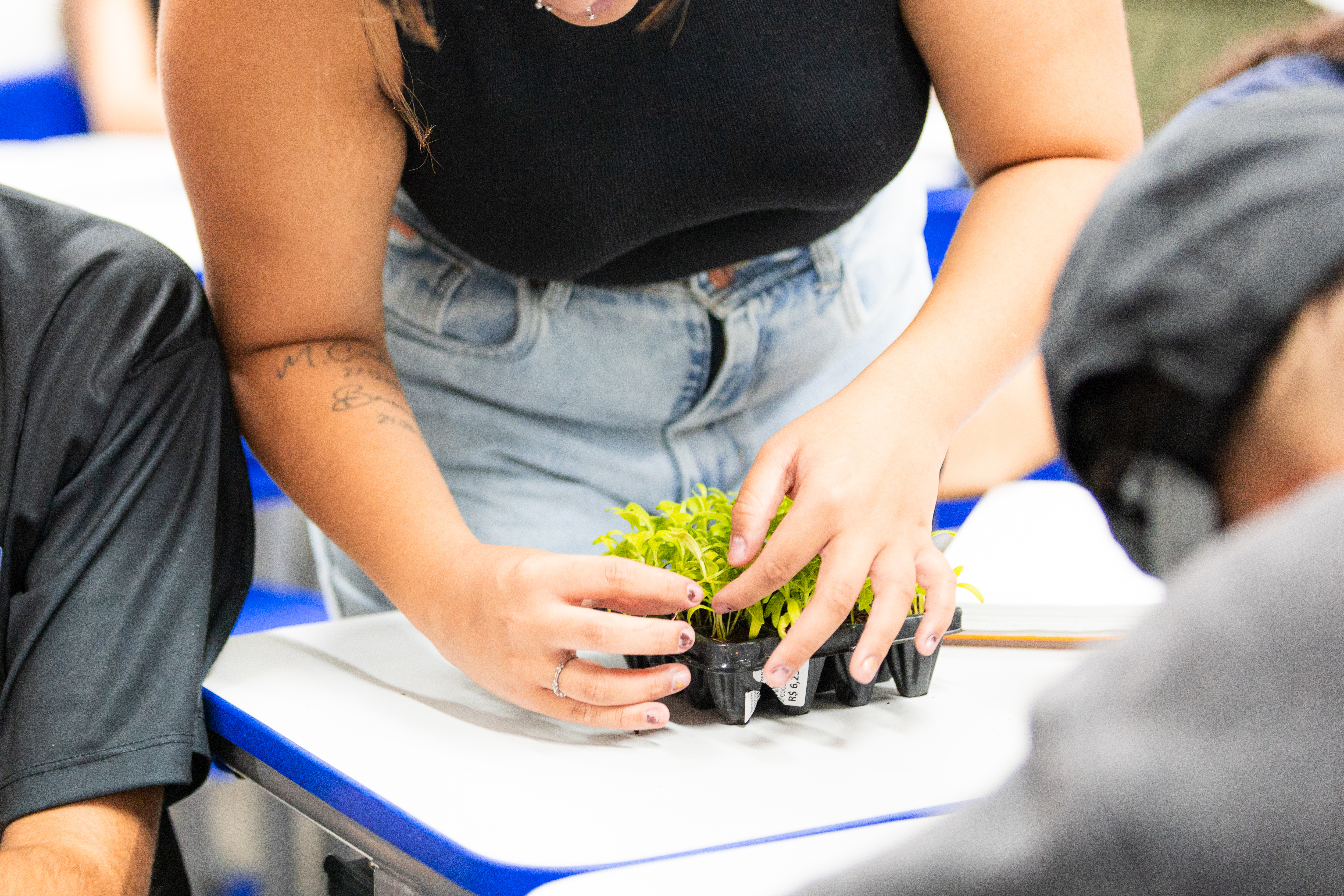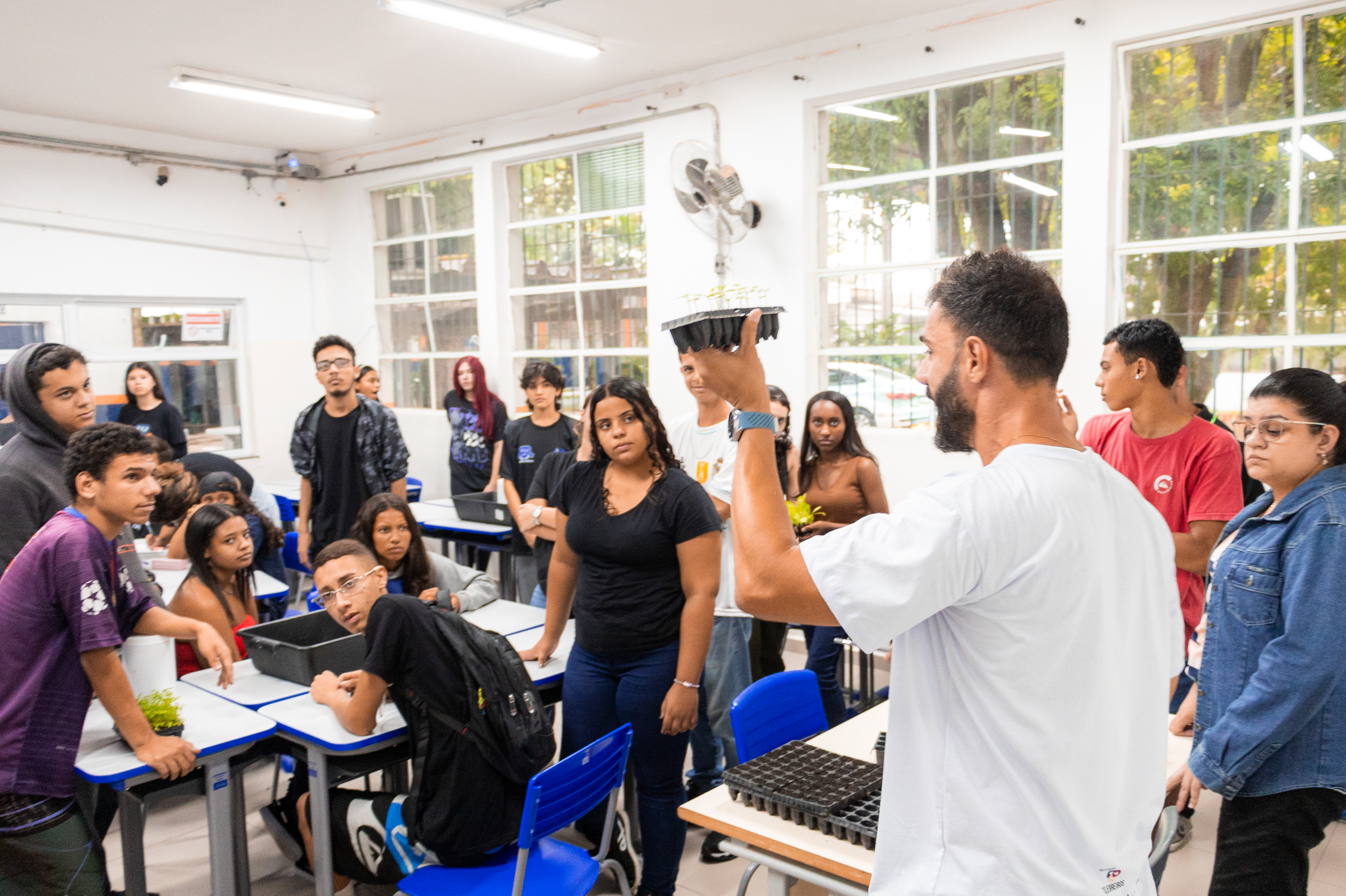 Em oficinas práticas, os estudantes aprenderam técnicas de plantio